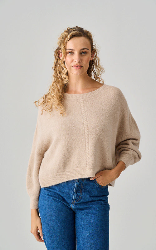 Scarlet V-Neck Alpaca Jumper - Khaki