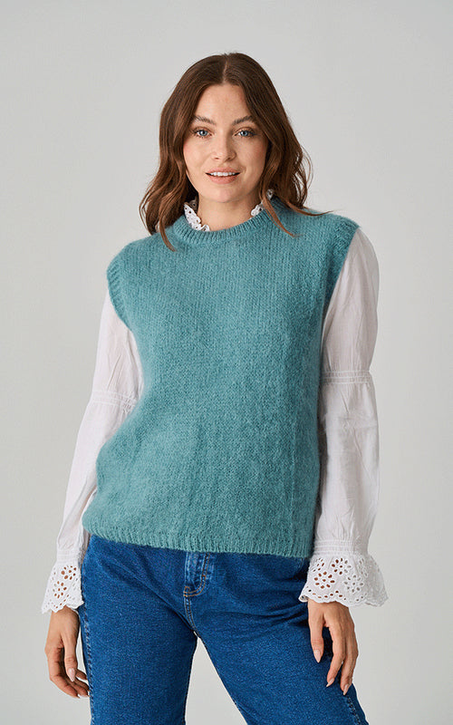 Hillesley Mohair Hooded Tank Top - Duck Egg