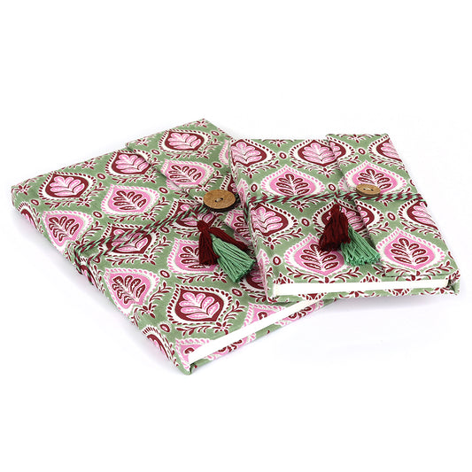 Green & Pink Block Print, Cloth Bound Notebook Set
