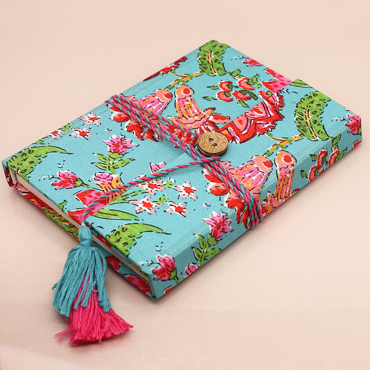 Turquoise & Pink Floral Cotton, Cloth Bound Notebook Set