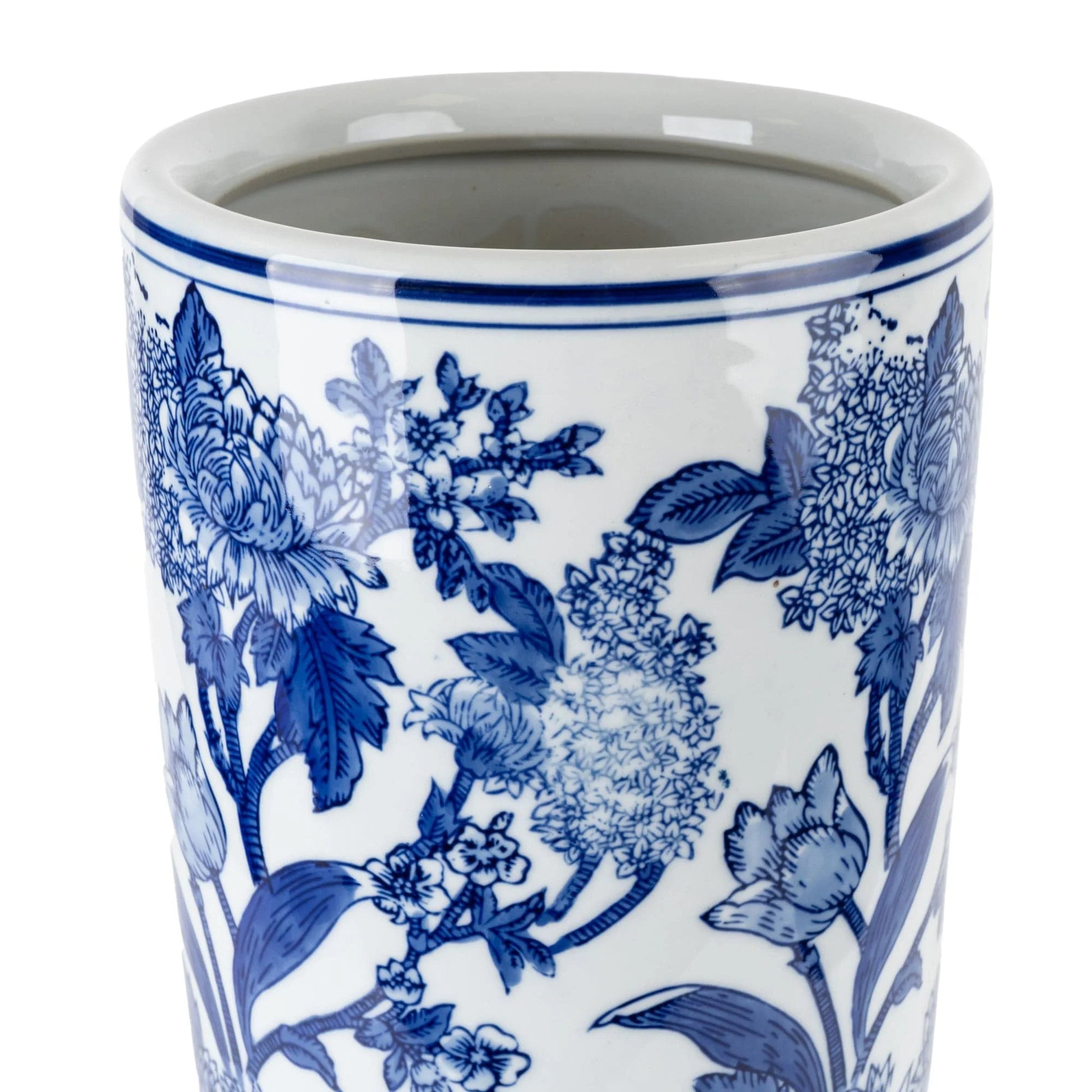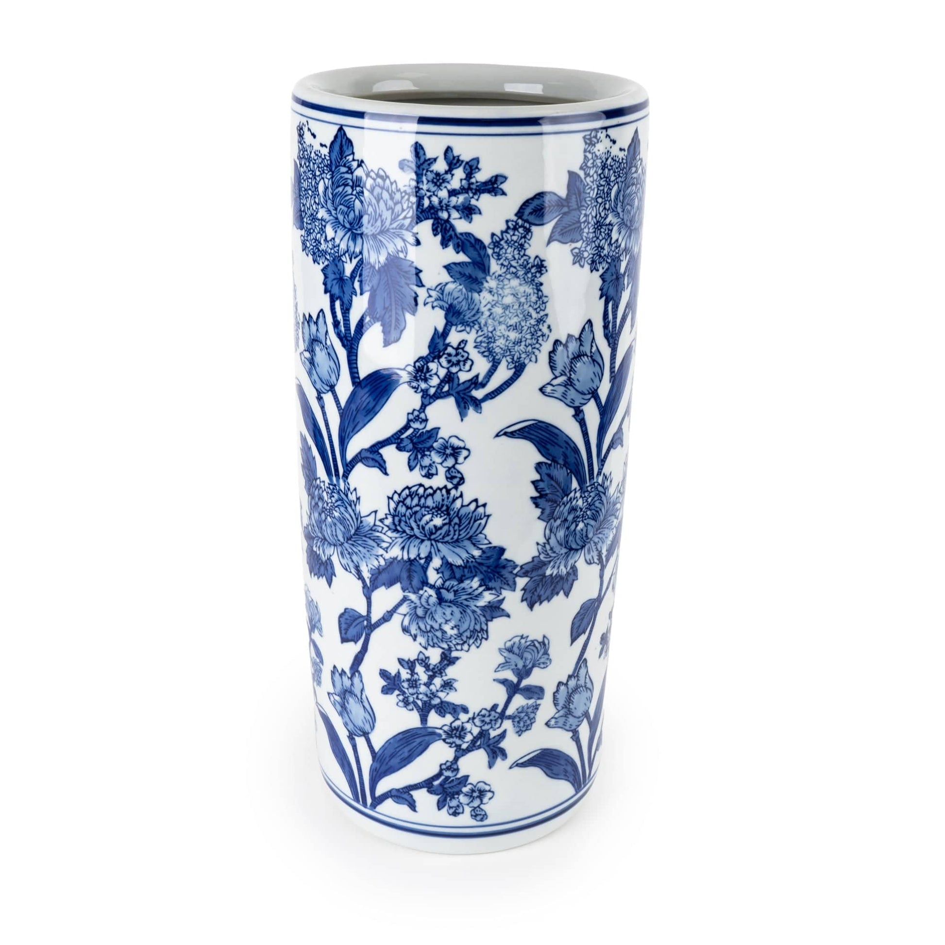 The 18" Cylinder Vase in Blue/White combines a sleek, modern design with a vibrant color contrast. Featuring a tall cylindrical shape and a striking blue and white pattern this vase makes a bold statement while providing a stylish base for floral arrangements or decorative accents.