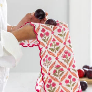 Our exquisite cotton napkin, hand block printed in India features a lively floral design in vibrant colours, perfect for adding a touch of elegance to your dining experience.