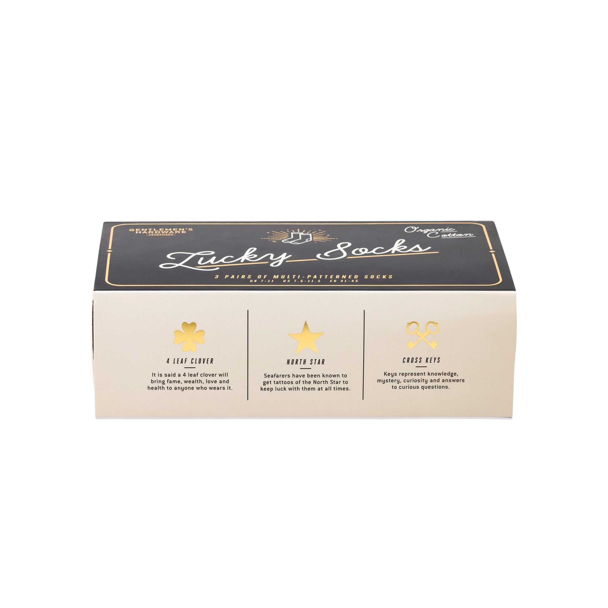Set of three pairs of Socks features a different lucky icon from around the world that we hope will bring you good fortune and success. Made from soft combed cotton.