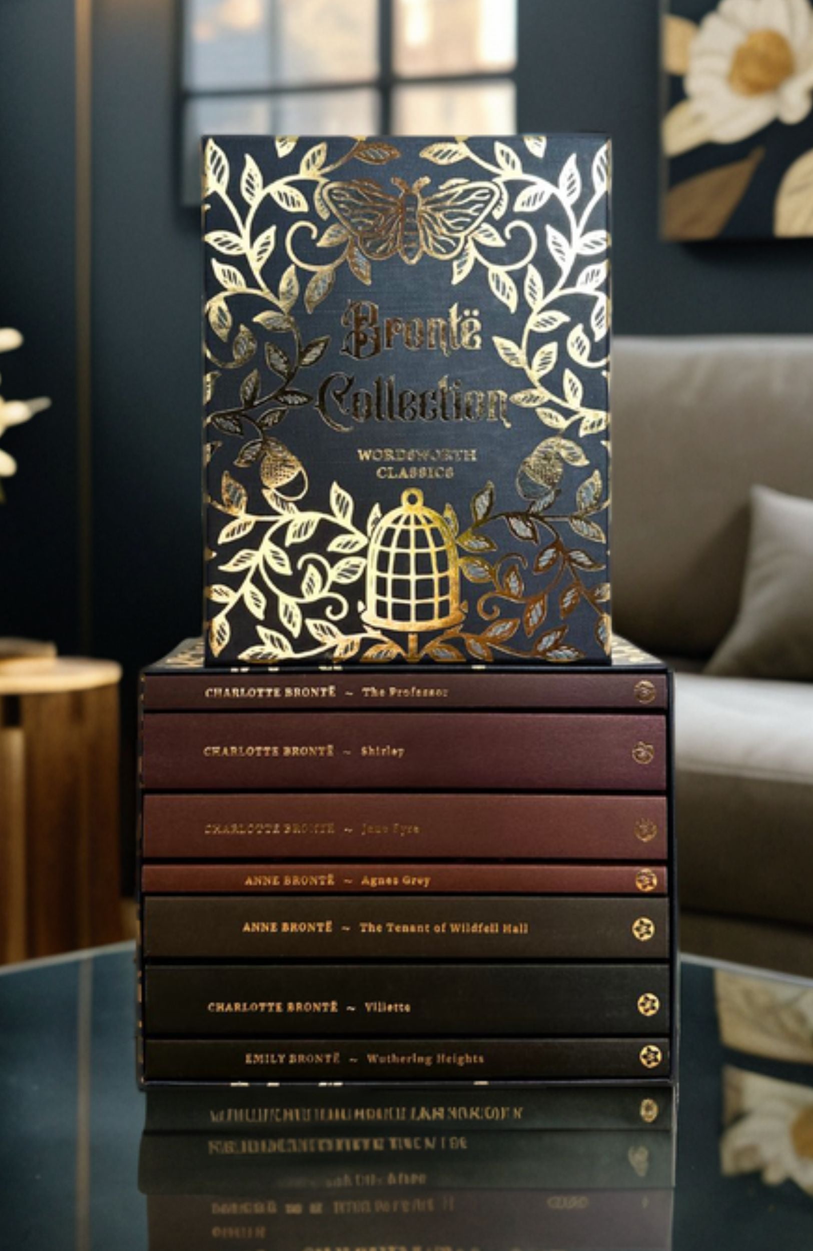 This boxset contains seven books, together creating a comprehensive collection of the Brontë Sisters’ best and much-loved works. Beautifully packaged in a rigid slipcase complete with gold blocking detailing, which complements the strikingly beautiful exclusive artwork that adorns this box. It is the perfect gift for any Brontë lover, magpie/lover of shiny things or literary enthusiast.