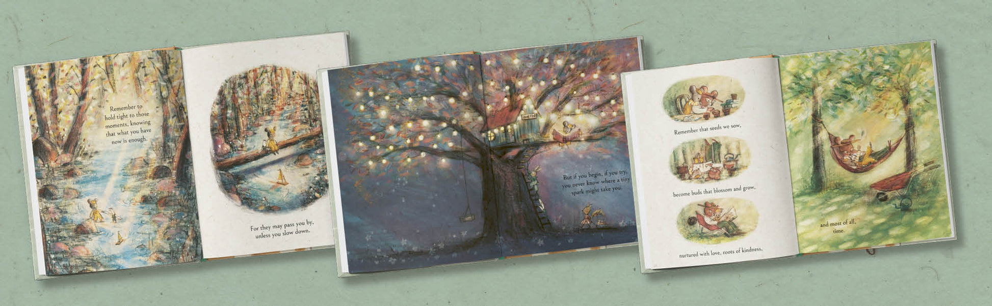 In 'Stones' a little bear builds a tower, only to see it come crashing down; 'Sparks' shows that you don't have to be good at everything all at once - you just have to begin; 'Stars' reveals that hope is always there, if you're brave enough to look for it.